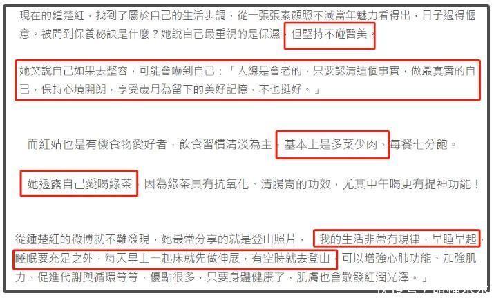 除了生计优渥以外,钟楚红也有我方的诊疗秘笈,那即是对峙不作念医好意思,她直言东说念主老是会老了,接收整容可能会吓到我方,只好认清这个本质,当然念念得开了,作念着实的我方,保持神思机动,享受岁月留住的好意思好驰念就挺好。